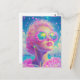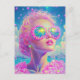 Glamorous Neon Woman with Sparkling Glasses Postcard