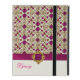 Elegant iPad 2/3/4 case, with graphics of a orchid pink gem and gold tone pattern. A solid ivory across the bottom, with graphics of an orchid satin looking ribbon with a pink and gold jewel. Personalize the pink text for yourself or as a glam gift idea.