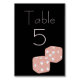 This glamorous custom table number card features a pink, feminine casino design. An image of large, pink glitter dice is printed across the center over a black background. You can personalize the table card to include your own custom name or text.