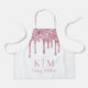This stylish custom apron features a glamorous and elegant design on a white background. Light pink glitter sequins are dripping across the top portion. Monogram initials are placed beneath the glitter, followed by a sample name printed in an elegant script font. You can personalize the apron to include your own custom name and monogram.