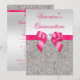 Glamorous Quinceañera Silver Sequins Hot Pink Bow Invitation