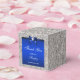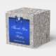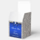 Personalized elegant custom silver and navy / dark blue / royal blue favor boxes for weddings or any event with a beautiful printed silver sequins pattern, a printed bow and ribbon and pretty printed diamond bling jewel. Text, font and color of font can all be customized. If you need assistance customizing your product please contact me through my store. I will be happy to help. I have matching products in my store. PLEASE NOTE: These are flat printed graphics - no raised parts.