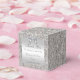 Personalized elegant custom silver favor boxes for weddings or gender neutral baby showers with a beautiful printed silver sequins pattern, a cute shiny silver printed bow and ribbon and pretty printed diamond bling jewel. Text, font and color of font can all be customized. If you need assistance customizing your product please contact me through my store. I will be happy to help. I have matching products in my store.
