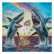 Glamour Chomp by Matt Chase Morelan is a breathtaking acrylic painting that showcases the power and allure of sharks. Featuring two sharks leaping out of the ocean, their jaws wide open, aiming to bite a group of shiny gems. The composition is expertly crafted, as the artist manages to capture the beauty and grace of these creatures, while also showcasing their raw power and primal instincts, with a breathtaking sunset.