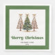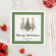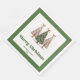Modern Christmas dinner napkins featuring three minimalist watercolor Christmas trees in earthy green and gold with playful leopard pattern accents and hand-drawn lettering. A stylish choice for festive tables, these napkins are personalized with your custom name, adding a unique and elegant touch to your holiday dinner or Christmas party décor. 🎄✨
