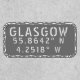 Glasgow Scotland latitude and longitude map coordinates in urban white font on gray background (both font and background colors can be easily changed if wanted)
