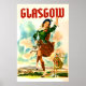 Vintage Travel Poster, Glasgow Scotland. With traditional costume scene.