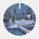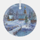 Christmas Ornament is shown in a glass round shape with a holiday winter scene.