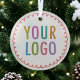 Easily personalize this round glass ornament with your own company logo. The diameter is 3 inches. One-sided printing only. No minimum order quantity and no setup fee.