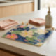 Bold botanical floral glass cutting board featuring navy peach pink garden design — the most gloriously cheerful and deeply lush illustrated botanical kitchen showpiece your countertop has ever had the absolute pleasure of hosting! Oversized creamy peach daisy blooms with sunny golden centers burst forward with the most joyfully confident and deeply alive floral energy alongside delicate coral pink blossoms and the most beautifully layered sage and forest green leaves all set against a rich and deeply sophisticated midnight navy background creating a piece so deeply alive with botanical brilliance and genuinely vibrant illustrative charm that it transforms your countertop from a functional surface into a genuinely breathtaking work of illustrated botanical art that stops absolutely every single person who enters your kitchen completely in their tracks with total and genuine garden devoted wonder and complete joyful botanical delight. Use it as the most gloriously cheerful and deeply beautiful charcuterie board at your most warmly and botanically curated garden gatherings where guests will photograph it adoringly before they ever think about reaching for a single perfectly paired and lovingly arranged bite, display it as a stunning standalone countertop art statement that anchors the entire navy peach pink botanical aesthetic of your most beautifully designed kitchen with quiet illustrated garden authority, or use it as the most breathtakingly gorgeous and deeply cheerful trivet your most spectacular garden inspired dishes have ever had the absolute pleasure of resting upon with such complete and total botanical illustration magnificence.