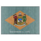 This cutting board proudly displays Delaware's distinctive flag, featuring a field of colonial blue with a diamond of buff color in the center, adorned with Delaware's state seal. The seal includes symbols such as a shield with a farmer and a soldier supporting it, a sheaf of wheat, and an ear of corn, symbolizing the state's agriculture and its role in the American Revolution.