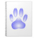 A shiny, transparent dog paw print made of glass. Custom notebooks. All digital image that reproduces the texture of glass.
