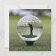 Pictured On A Golf Tee On A Golf Course Is A Transparent Glass Golf Ball With A Golf Player Inside.