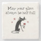 Glass Half Full Funny Wine Toast with Cat Stone Coaster
