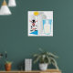 A glass of milk next to a milk carton with an image of a cow on it. This design looks really effective on this Poster