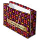 This colorful glass ornament pattern is great for the holiday season. These shiny ornaments are in shades of red, pink and gold. On the front and back of the bag there is a gold color band with an area for text. Shown here, the text reads, "Happy Holidays!", which you can customize.with your own text.