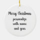 Lightweight, smooth, pure white ornament with nice sheen. Perfect size to be seen from across the room ... and to attract closer inspection! Price was great for ordering enough for the whole family! Clear, bold black design just as requested. Matches the order exactly. Just so nice!
