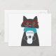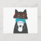 Glasses cat holding a cup of coffee postcard