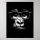 Gorilla face in horn-rimmed glasses. Stark black and white graphic on t-shirts, hoodies, cards, gifts.
