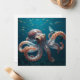 Blank notecard. This image shows a hyper realistic octopus with a glass-like appearance swimming in the deep ocean. Schools of iridescent fish and sea turtles swim behind it, all rendered with intricate, ultra-detailed textures.