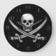 Glassy Pirate Skull & Sword Crossbones Large Clock
