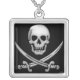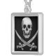Glassy Pirate Skull & Sword Crossbones Silver Plated Necklace