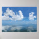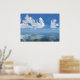 Glassy sea scape with clouds is an original digital painting. Blue skies, puffy clouds, and reflections in a glassy sea.