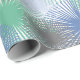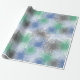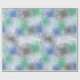 This wrapping paper has a mid-century modern design of starbursts in glaucous (blue), gray, light blue, and green.