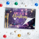 Beautiful personalized Christmas themed paper placemat design featuring snowflakes, sparkles and blurred gleaming lights on a purple background and the text "Merry Christmas" written in two different modern fonts and your family name. The text is fully customizable.