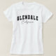 Let everyone know you love The Glendale with this white T-Shirt for women. This design is great as a gift, souvenir or to show that you're proud to be from Glendale, California. This t-shirt design features "Glendale" in a slab type font and "California" in an elegant handwritten style font.