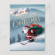 Santa gracefully rides skis down a snow-covered slope, leaving a trail behind him as the crisp winter air rushes past him.