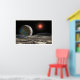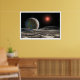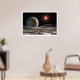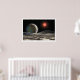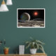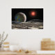 Gliese 581 c, shown from the perspective of a possible moon, is thought to be a rocky world about 1.5 times the radius of Earth. Its temperature is uncertain, yet it resides near the star’s habitable zone, making the existence of oceans and lakes a possibility. From a mixed media illustration created for “The Search for a World Like Our Own: Imagine Earth 2.0,” at swissnex San Francisco on May 15, 2008. The original art is in a private collection.