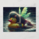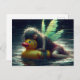 Glitch Fairy asleep on a duck pool float Postcard
