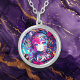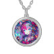 Glitchcore Colorful Anime Girl Artwork Silver Plated Necklace