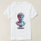 Dive into a retro-futuristic vibe with this unique T-shirt. It features a glitched Roman bust distorted with vibrant effects, surrounded by soft pastel geometric shapes and classic retro