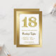 A modern gold framed 18th birthday party invitation featuring a faux gold glitter number 18.