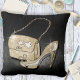 Add a touch of elegance to your room for a Sweet Sixteen or other everyday with this throw pillow featuring glittering fashion accessories, (high heel shoes and purse) in a trendy retro style against an eye-catching background of shining black. Reverse has a gold glitter pattern. Search ID675 to see coordinating products and color options for this design.