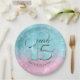Celebrate your Quinceanera event in style with this paper plate featuring a unique decorative font, a trendy retro style and an eye-catching gradient background of glittering teal through pink. The striking 'Cara 15' text (dear or precious fifteen) is optional and can be deleted to use the template for other occasions. Use the provided template to add a celebrants name and birthdate. Search ID701 to see other products and color options for this design.