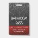 Ruby red and black metallic faux glitter sparkles behind an easy to read and update bathroom hall pass. Update the text to show the teacher and school name, as well as the purpose of the badge. Available in many other sparkly colors and designs.