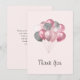 Thank you card with an illustration of a bunch of balloons in pink and silver gray colors.