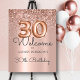 Modern Elegant Rose Gold Glitter Balloon 30th Birthday Welcome Foam Board. Welcome guests with this Feminine Girly Adult Birhday party sign featuring Rose Gold Metallic Glitter elegant hand lettered calligraphy script and fun rose gold foil number balloons on rose gold or blush pink metallic foil look background. Ideal for a (thirty) 30-year-old woman's birthday celebration perfectly captures the essence of a modern rose gold and blush pink glitter sparkle girly birthday party.
