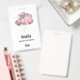 Name badge with an illustration of a bunch of balloons in pink and silver gray colors.