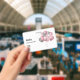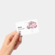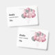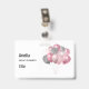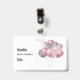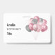Name badge with an illustration of a bunch of balloons in pink and silver gray colors.