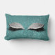The pillow features an eye-catching design of glittery black eyelashes set against a vibrant teal backdrop, accented with a silver eye motif. This dramatic and stylish image not only makes the pillow a striking decor item but also a conversation starter. The lumbar shape offers support and comfort, making it both a practical and chic addition to any sofa, bed, or chair.