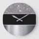 Glitter Black Silver Pattern Print Design Large Clock