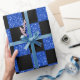 Glitter blue and black checkers pattern (faux not real glitter). Checker gift ideas.