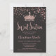 Glitter Crown Rose Gold Gray Confetti Sweet 16 Invitation