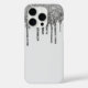 This iPhone 16 Pro case is shown in a pretty silver color faux glitter drip print.