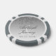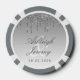 These wedding favor poker chips feature a sparkling silver faux glitter drip top border on a silver ombre background. Personalize them with the names of the bride and groom in elegant dark gray script superimposed on a white ampersand symbol, with the wedding date below in dark gray sans serif font.
