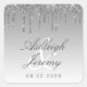 These wedding stickers feature a sparkling silver faux glitter drip top border on a silver ombre background. Personalize them with the names of the bride and groom in elegant dark gray script superimposed on a white ampersand symbol, with the wedding date below in dark gray sans serif font.